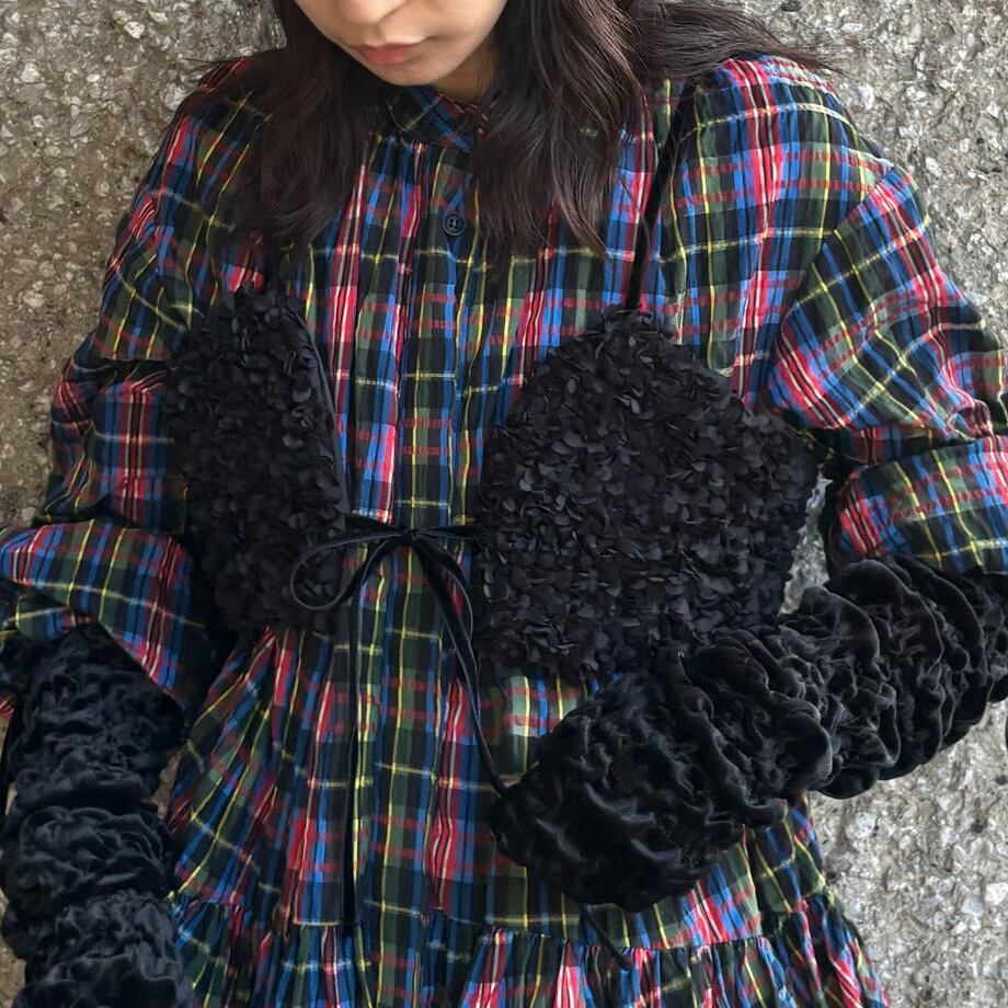 フロントのリボンとバックのゴムでサイズ調整が可能です。