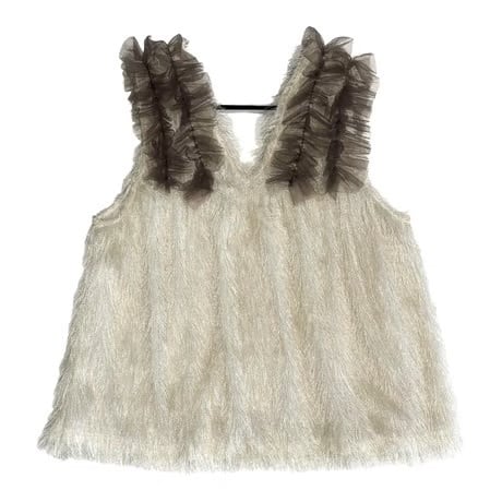 肩のチュールが可愛い、シャギー素材のベスト。