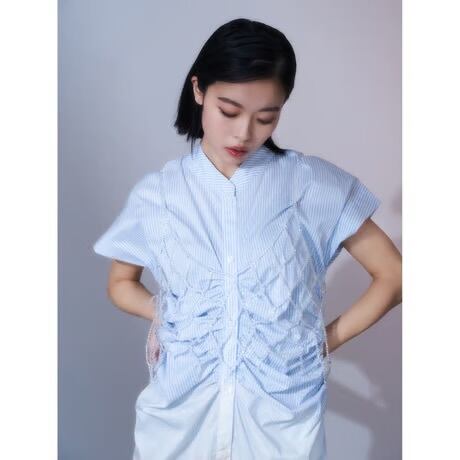 ウエストから腰にかけてシャーリングのデザインが入っています。