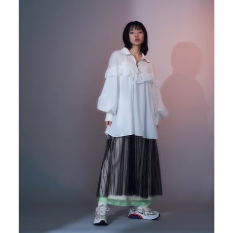 half zip frill blouse(WH)