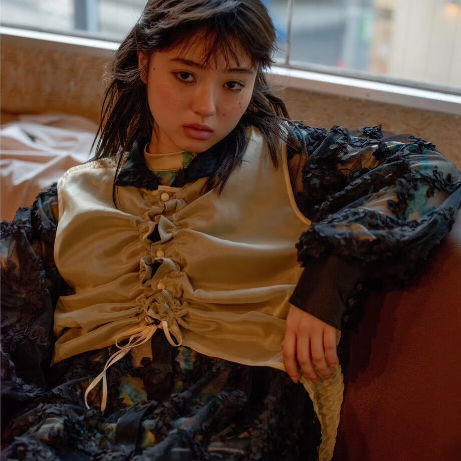 プリーツドロスト両前ベストブラウス